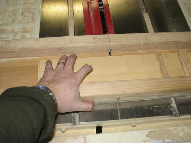 Encontré un tip que puede tomar palos de pintura para latas de pintura de 5 galones y cortar en tiras y utilizarlos para ranuras en el piso de la banda. Estas encajan en las ranuras cortadas por el ranurado.25 poco hacer una lengua inmediata en el Consejo.