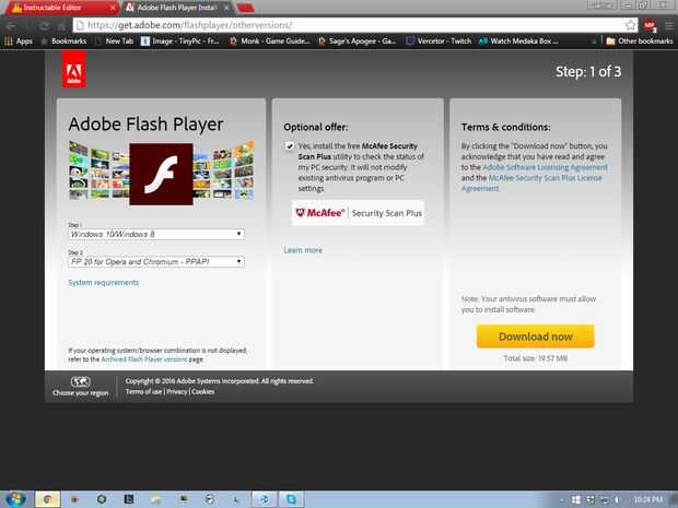 Paso 3 es para seleccionar la versión. Que en mi caso voy con FP 20 para Opera y Chromium - PPAPI ya que uso Google Chrome.