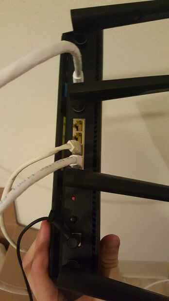 El primer paso es reunir todos los cables necesarios para su red doméstica. Por favor asegúrese de que está utilizando el cable correcto. Este router utiliza conexiones RJ-45. Como se ve en la imagen, el cable superior es la entrada (de mi caja de ISP) y la parte inferior, dos son para mi red doméstica los interruptores.