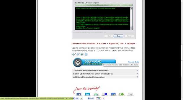 Luego, haga clic en este enlace para ir a la página de descarga del instalador USB para Ubuntu, luego haga clic en "Descargar", después de desplazarse hacia abajo un poco: http://www.pendrivelinux.com/downloads/Universal-USB-Installer/