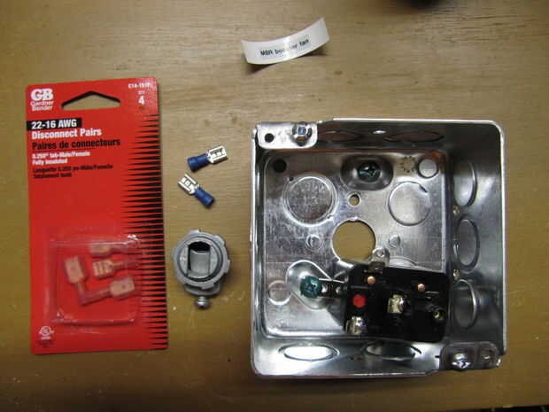 * Cajas de empalme - ver fotos para más información. Son generalmente alrededor $3-4. Usted necesitará uno para conectar el ventilador. Más probable es que su código local requiere que tengas todas las conexiones de voltaje no baja en una caja de empalme. Usé una caja de tomacorriente superficial para la conexión en el extremo del ventilador y un regular para el interruptor de "activar o desactivar". Para la conexión en el horno utilicé una caja cuadrada para tener más espacio. La próxima vez buscaré una caja más grande que se acomode 2 relés. Como nota, todas las conexiones tienen que ser accesibles en caso de un problema eléctrico. Esto significa que si usted nunca termina su sótano y su caja de empalme se ocultarán por yeso, tienes que cortar el drywall y tener algún tipo de acceso puerta (panel). Esto no es sólo una buena práctica, pero también es código eléctrico.