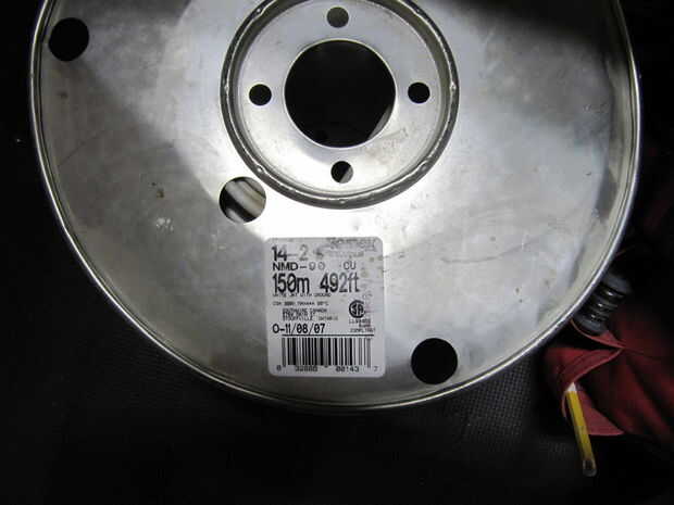 * 15A cable (blanco) de 14-2 - usted no necesita comprar un carrete, puede por un "paquete" o simplemente pedirles que corte para ti. Ya he tenido un carrete así, lo sentimos, no hay precio.