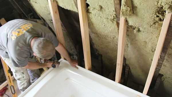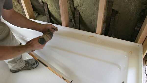 Una vez que estás satisfecho la tina es nivel paseo en ella incrustar en el mortero. También, si hay una brecha entre el uso de brida y los pernos prisioneros de tina una cuña. De lo contrario podría romper el labio de la tina al fijarla a la viga.