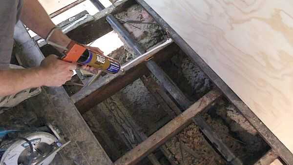 Clavo líquido se aplican a la parte superior de las vigas.