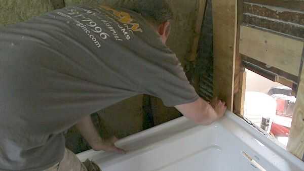 Este viejo era un dolor en el trasero. Ninguno de los muros eran rectos o plomada. Tan seco cabe la tina y había centrado en la pared de la tubería.