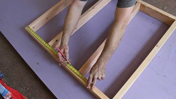 Steve un 2 × 4 a esta dimensión y clavado al piso, otra vez y asegúrese de que con el montante delantero y marca en la madera contrachapada.