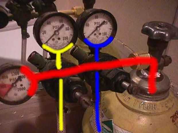 Si usted es confuso en cuanto a cómo funcionan los reguladores, lugar hablar con la gente de la fuente de soldadura. Admitir en el frente que no sabemos mucho de gas CO2 o reguladores y pídeles información. También, mire sus reguladores. Por lo general se lista en la parte posterior que son las primarias y cuales son los puertos secundarios.