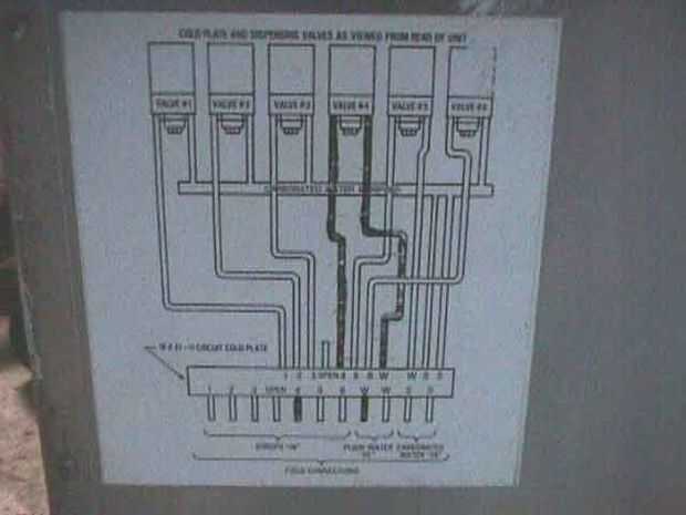Si su unidad no tiene uno, póngase en contacto con el fabricante y obtener el manual o consultar su sitio Web. Usted definitivamente quiere tener esta información. Prestar atención a la placa fría (bloque rectangular en la parte inferior del diagrama que todo pasa a través.) Como se puede ver, a partir de la izquierda, tenemos jarabe de 1-3, un conector «abierto», jarabe 4-6, agua x2 y agua de soda x2 **. Asegúrese de seguir correctamente este diseño. Sugiero etiquetar todas sus mangueras, bombas de jarabe, etc. así que no te confundas y gancho la cosa equivocada por algún lado.