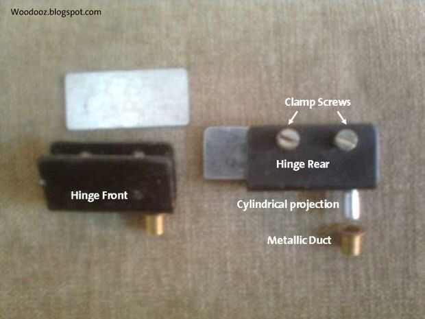 La bisagra tiene una proyección cilíndrica que se coloca dentro del conducto metálico. Una vez ubicado, la proyección permite el giro libre de la bisagra y a su vez la puerta