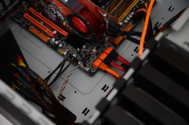 Conecte el otro extremo del cable de datos SATA a la placa base.