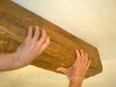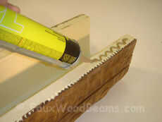 8 aplicar PL Premium construcción adhesivo polivinílico o líquido poli clavos en los bordes superiores de la viga donde toca el techo (siga las instrucciones en el tubo.)