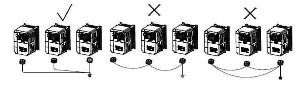 b. cuando usas varios VFDs, no enrolle el cable de tierra para tipo de lazo. De lo contrario, el VFD actuará anormalmente.