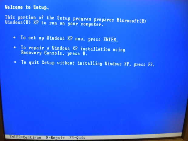 Se desea porque usted está planeando sobre la instalación de Windows XP en su sistema, presione Entrar. Si te das cuenta que tiene datos en tu disco duro y necesita que lo respalde, ahora sería el momento de pulsar F3 y salir del programa de instalación que lo respalde.