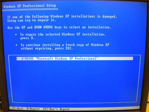 Después de presionar F8, llegará hasta el comienzo de la instalación de Windows XP. En esta página, tienes que presionar la tecla Esc en el teclado. Esto le dirá el programa no para tratar de reparar la instalación actual.