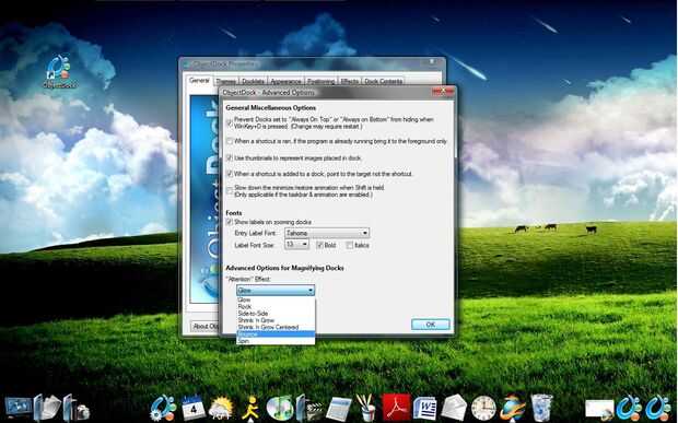 En varios se puede editar la fuente, el tamaño de fuente---convirtiéndolo en negrita o cursiva, pero, lo más importante usted puede cambiar el efecto de"atención". Esta es la acción que un icono en la barra de tareas si el programa está activo o ha cambiado. Aquí he cambiado el efecto de la atención al rebote.