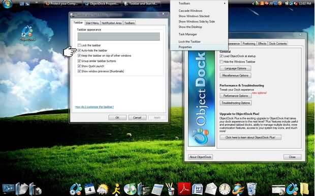 No me gusta que se oculta por el menú de inicio por lo que sólo ocultar automáticamente la barra de tareas de Windows. Mi barra de tareas está en la parte superior.