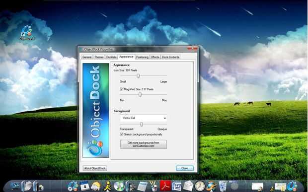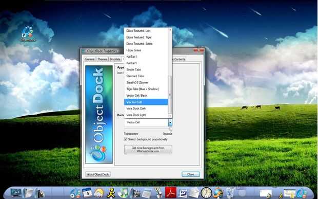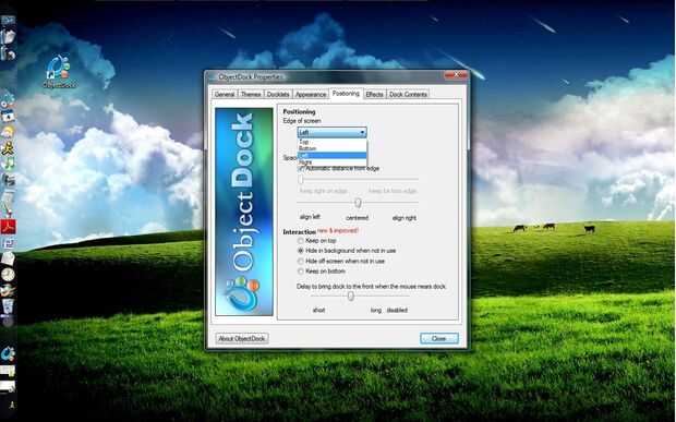 En las "propiedades de ObjectDock" seleccione la pestaña de posicionamiento y vaya al "borde de pantalla" para cambiarlo.