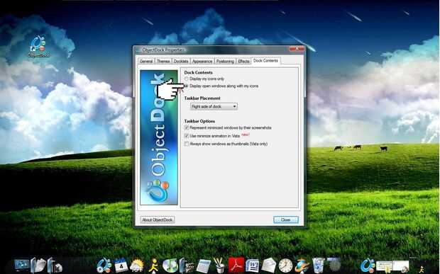 En sus propiedades de ObejectDock ir al grifo que dice contenido del muelle.