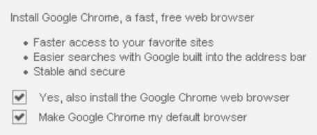 Paso 11: Anule la selección de "sí, también instalar el navegador Google Chrome" y "Hacer Google Chrome mi navegador por defecto" ubicado en la esquina inferior izquierda del cuadro de diálogo instalación de Avast haciendo clic en las marcas de verificación