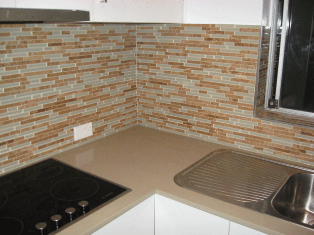 4. cubierta o "back-mantequilla" cada pedazo de cristal del azulejo con el borde plano de la llana para proporcionar una instalación libre y buen contacto con el mortero.