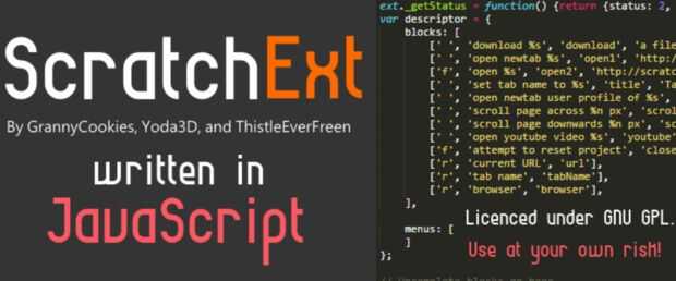 ScratchExt es conjunto de extensiones de JavaScript para rayar, una programación medio ambiente y comunidad para personas de todas las edades. Es un proyecto desarrollado por GrannyCookies, Yoda3D y thistleeverfreen.
