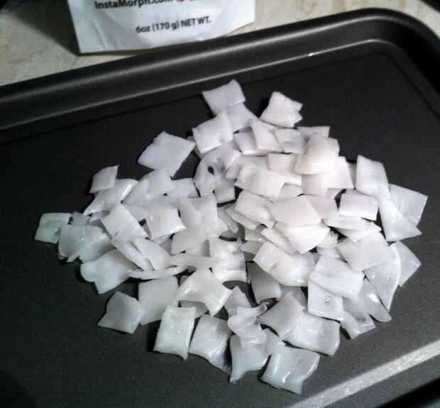 Si desea almacenar el Instamorph para otro día, cortado en tiras, luego cortar las tiras en cuadrados. Una vez frío, el Instamorph está listo para ser vertido en su bolsa original o una caja nueva y almacenada hasta que desee volver a usar. Usted puede ahora siga las instrucciones en el paquete y el calor la Instasmorph mediante el método de agua caliente.