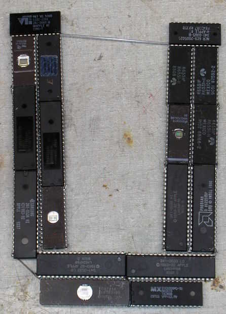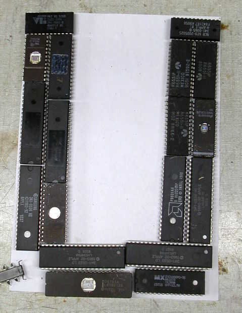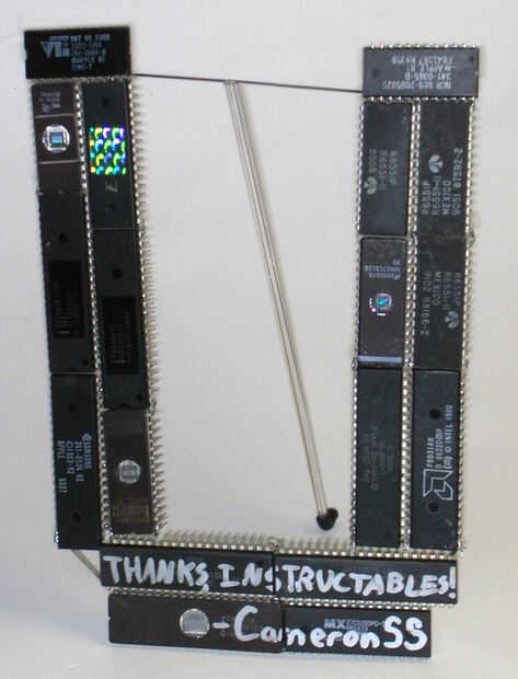 La sugerencia salió a base de nuestros proyectos en el Instructables que hemos completado. El único proyecto de que tenía hasta que pude basar una letra era mi pendientes del circuito. Mi plan era hacer la U fuera una motherboard vieja tenía por ahí. Entonces PKM puso una imagen de la placa de circuito que iba a utilizar, y parecía agradable y limpia, así que decidí venir para arriba con otra cosa. Como parte de la carta original de la tarjeta de circuitos, que iba a soldar poco IC chip insectos arrastrándose toda la letra, y ya que tenía mucho de viejo ICs, decidí hacer la cosa entera de ICs.
