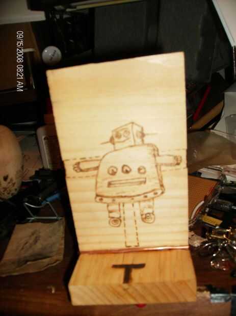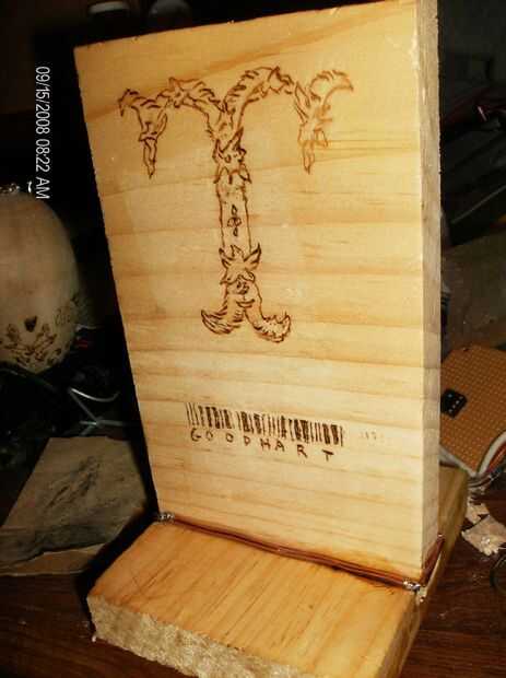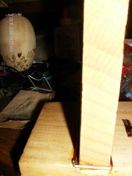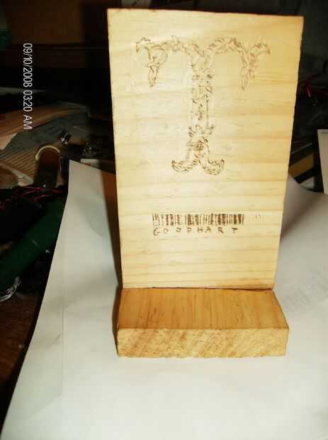 Una vez la ranura del tamaño apropiado para acomodar el pyrograph, yo había deslizado entre los 2 junto con un poco de pegamento de madera y 2 tornillos para madera en de la parte inferior para "amarrar" en lugar, recordando que tenía que perforar 2 buriles primero (para que los tornillos no sobresalgan y lije la superficie en que se sentó).