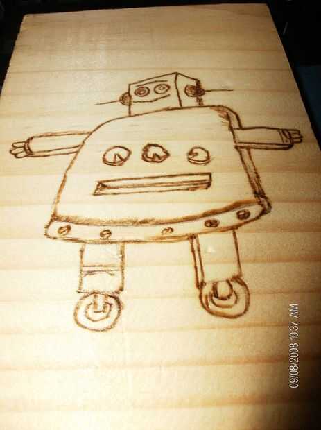 A continuación grabarlo en. Utilice el método normal de trabajar de adentro hacia afuera, convirtiendo la madera más bien luego siempre empujando el lápiz. Siempre dibujar la pluma caliente hacia usted si puede (punto hacia fuera).
