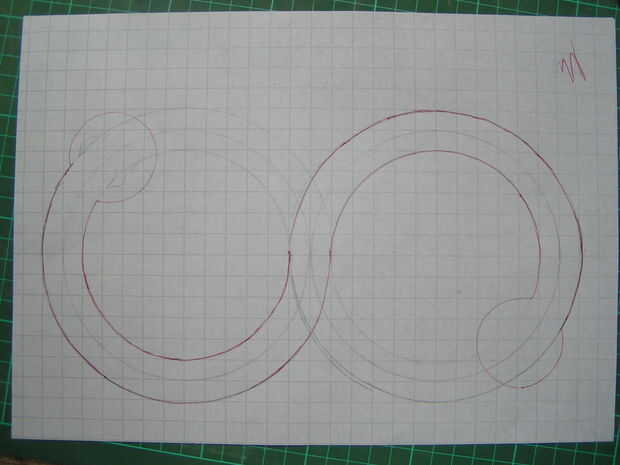 Mano-saqué la plantilla con lápiz y compás, dibujando alrededor de un vaso pequeño para los círculos terminal.