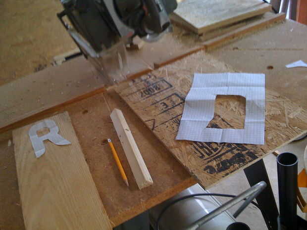 Todo comenzó con un bosquejo de la rugoso. Yo sabía que mi "R" se haría de la madera, así que saqué lo que quería en un pedazo de papel. Entonces elaboró una copia final en papel milimetrado y se puso a trabajar en la carta real.