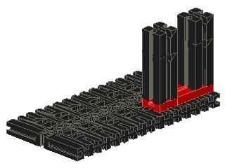Inserte el pasador del bloque 15 en la ranura inferior de un bloque de construcción de 30. Deslice el pasador del bloque 30 en la ranura del 5 bloque de edificio situado en la placa base. Hacer una segunda combinación de bloque de edificio y deslícelo en la ranura del bloque hueco 15 x 30 x 5 con ranura y Pin.