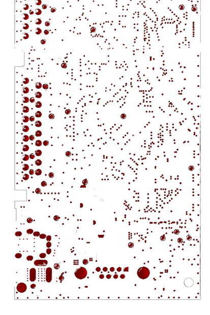Encontrar cualquier bit de pista u otros artefactos que muestran a través de y los borre. Los puntos que quedan son ahora su lugar-para cada conexión a través de la Junta. Copiar las marcas de alineación a la capa si las está utilizando y guardar una copia en un nuevo archivo PNG. Llamarlo algo significativo, como soldadura lateral de holes.png. Por último, eliminar todas las capas en el archivo original excepto el mostrando los agujeros que rescató.