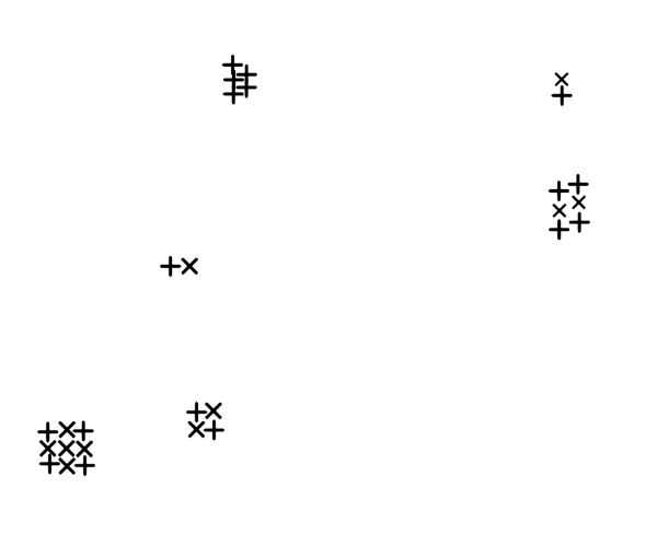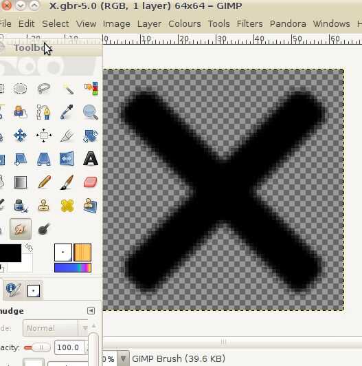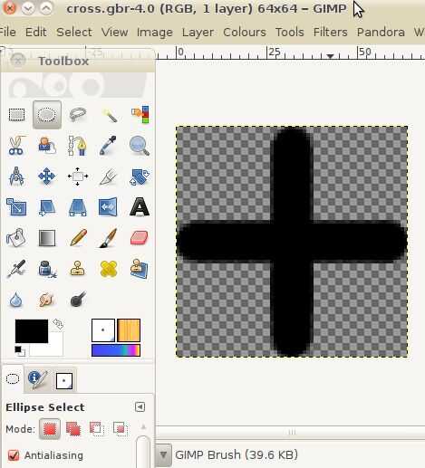 Repita el procedimiento utilizado al círculo de los agujeros de plano de tierra, sólo que esta vez sólo poner una x o unos + sobre la libre agujeros. Esta manera, el centro de la marca todavía muestra donde van los agujeros. Hice estas escobillas haciendo selecciones rectangulares y triangulares en un lienzo cuadrado de 64 píxeles, acariciarlos, y luego borrar los bordes exteriores, sin embargo, desde entonces me he dado cuenta te probablemente podría utilizar un texto "x" y "+". Poner una selección círculo alrededor de la "x" el ancho y la altura del lienzo, invertir la selección y eliminar los extremos de los brazos, por lo que no es desproporcionado en relación con el "+".
