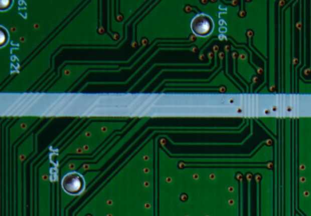 Copiar la imagen en una nueva capa y lo Desaturar. Elegir la luminosidad. Probablemente se vea ya un poco de detalle. Usted puede sacar esto un poco más cambiando el modo de mezcla de la capa - encontré "quemar" a ser particularmente bueno. Ajustar la luminosidad de la capa (colores > Tono saturación) para sacar más detalle (esto es más eficaz que el uso de brillo/contraste). Esté activa la capa que está trabajando en y seleccione las áreas de pintado suelo plano y sustrato que desea eliminar. Guardar la selección en un canal y elimínelos. También puede utilizar la herramienta de clon para pintar pistas sobre estas áreas, sin embargo, tenga cuidado de no pintar en pistas que no existen!