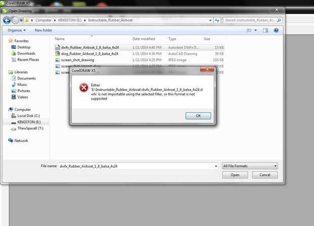 He probado varias variaciones del archivo DWG de Inventor. Inventor o AutoCAD formato produce los mismos resultados. Un tipo de archivo corrupto o no identificados en CorelDRAW. Si imprime un .pdf recibe un error de archivo dañado importar en CorelDRAW también. La. Formato de archivo DWF no es reconocido ya sea.