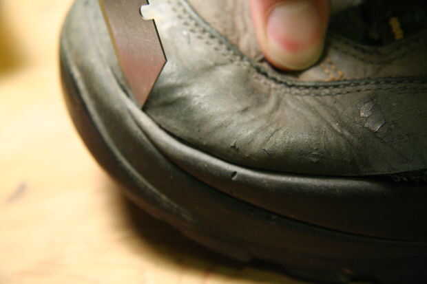 Cortar el cuero de la suela de goma. Esto puede o no puede ser una buena idea. Si decides esto es para usted (y sus botas) no cortan en el proceso.