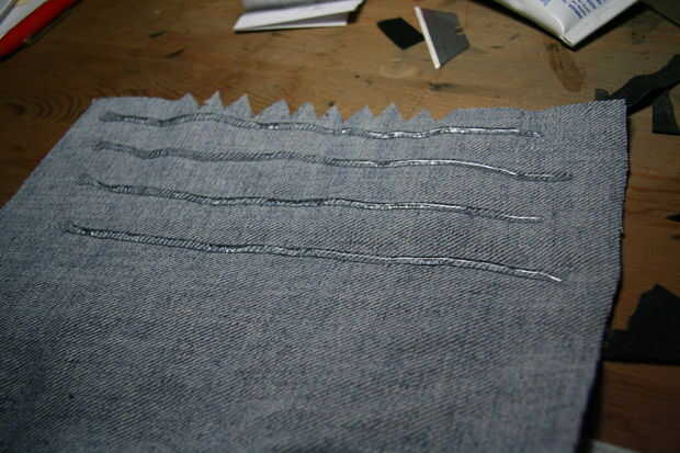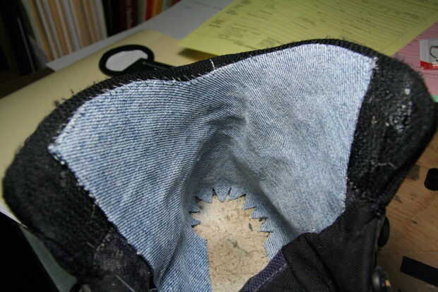 Ya hice un instructable sobre la fijación del talón de un zapato. Brevemente, el pegamento en un trozo de tela y coser en alrededor de la parte superior. Ver < a href = " > aquí < /a > para más detalles.