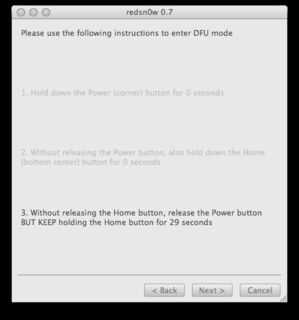 ** Cuando se han realizado los pasos correctamente, la pantalla del dispositivo irá blanco esto es normal. El programa ahora enviará los archivos del jailbreak y la pantalla cambiará para mostrar los avances y lo que está sucediendo
