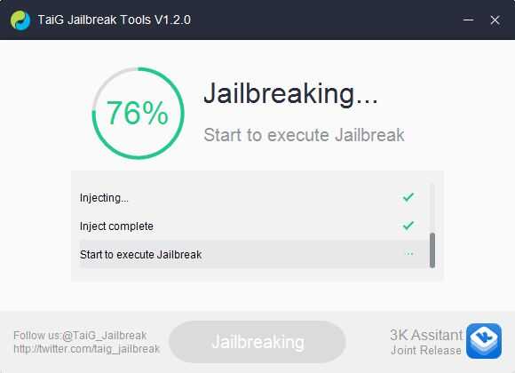 Esto no debe tomar mucho. El proceso puede atascarse en algunos puntos pero no te rindas. Deje que TaiG haga su trabajo hasta completar.