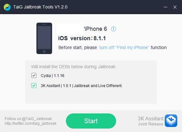 Para comenzar la operación de jailbreak, haga clic en el botón "Inicio".