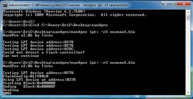 Si tiene problemas con nandpro, vaya detectando sobre y doble revise todo su soldadura. Si saltan hacia fuera en el diodo, trate de agregar uno, y a reiniciar el ordenador ha solucionado el problema unas cuantas veces para mí. También quiere asegurarse de que su cable es corto como sea posible.
