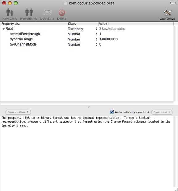Por ejemplo: /Users/Home/Library/Preferences/com.cod3r.a52codec.plist.