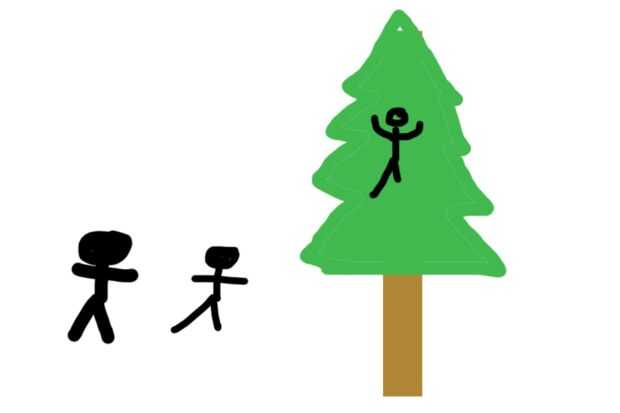 Paso 1: Una persona sube el árbol de la 2/3 de arriba