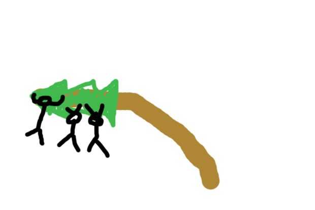 Una vez que se aseguran los pies derribarlo (con el árbol) y todos tienen aferrarse. En este momento una persona debe tomar el punto más alto posible en el árbol. Un alto punto antes de que el árbol llega a ser demasiado fino.