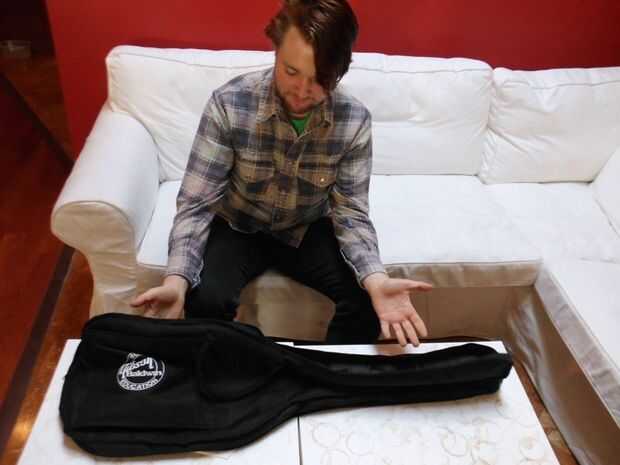 El primer paso es tomar la guitarra de aire de la caja.