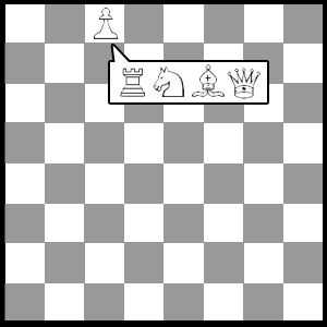 Si un peón alcanza el lado opuesto del tablero, se promueve a una pieza mayor (excepto el rey). No hay límite a cuántos peones pueden promoverse.