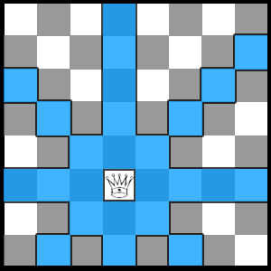 La reina se mueve en líneas rectas y diagonales continuas. Adelante, hacia atrás y de lado a lado.