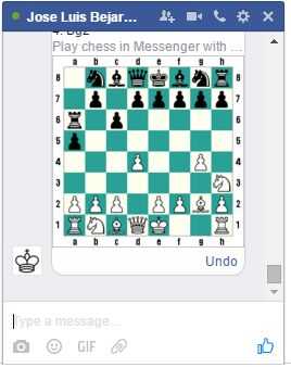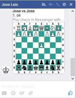Para mover piezas de mensajería de facebook utiliza la notación típica: que es primero escribir la letra y el número dónde mover la pieza deseada, prefacio cada instrucción con el comando