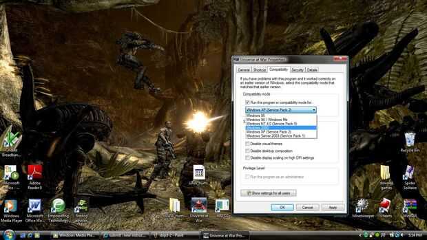 Haga clic con el botón derecho el icono, propiedades del golpe. Haga clic en la pestaña "compatibilidad" y Compruebe la casilla de "ejecutar en compatibilidad con for..." y elegir el sistema operativo hace más cercano a cuando el juego fue lanzado. por ejemplo, AVP2 fue lanzado en 2001 por lo que seleccionar windows 2000.